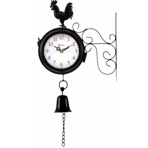 Relógio de Parede de Estação Herweg 6489-34 Preto Estilo decorativo com galo e sino Base de metal pintato preto Visor de vidro Mecanismo Step tic-tac Usa pilha AA não inclusas