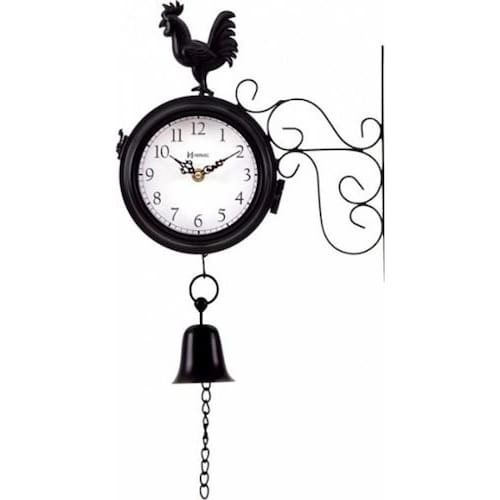 Relógio de parede de estação herweg 6489-34 preto Estilo decorativo com galo e sino Base de metal pintato preto Visor de vidro Mecanismo step tic-tac Usa pilha aa não inclusas Medidas: Largura: 28 cm Altura: 50 cm Espessura: 9 cm Manual de instruções Certificado de : 12 meses Marca: Não Informado