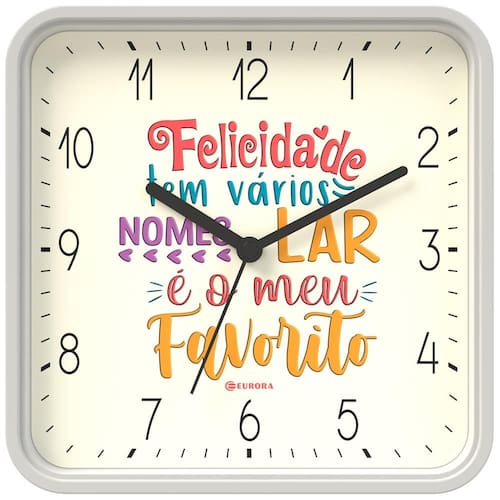 Cor do Mostrador: bege com inscrição Felicidade tem vários nomes Lar é o meu favorito e números em preto