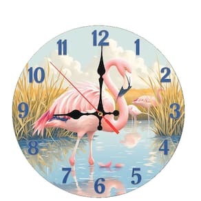 Material: Material da casca: madeira Material do espelho: revestimento de papel Material do mostrador: MDF Tamanho: 30 × 30 cm Peso: 320 g Design vibrante de flamingo: apresenta um flamingo deslumbrante em meio a um fundo tropical, adicionando uma atmosfera brilhante e animada à sua casa ou escritório. Silencioso e sem tique-taque: o movimento silencioso de quartzo sem tique-taque garante um ambiente tranquilo e silencioso, ideal para quartos ou salas de estar. Estética tropical: o vibrante flamingo rosa e o tema tropical tornam este relógio perfeito para espaços modernos, divertidos e de inspiração costeira. Durável e leve: feito com um espelho coberto de papel de alta qualidade, caixa de madeira e mostrador de MDF, este relógio é durável e elegante. Tamanho perfeito: com 30 cm de diâmetro, ele se encaixa perfeitamente em qualquer ambiente, adicionando função e um elemento decorativo divertido à sua decoração.