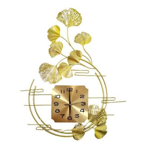 Relógio de parede folhas 3d design vertical metal 80cm Uma coleção luxuosa de relógios em metal dourado