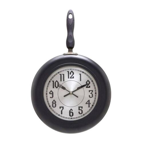 Cód.: 13297-PL Relógio de Parede Frigideira Preta Material: Alumínio Cor: Preto Dimensões: 48x30x5cm (AxLxP)
