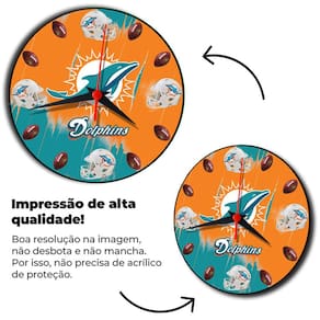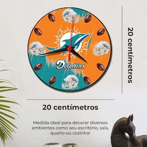 Relógio de Parede Futebol Americano Decoração Miami Dolphins