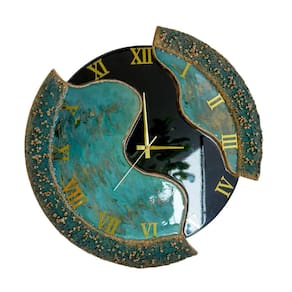 Relógio De Parede Grande 60cm Luxo - Fundo Preto Com Verde Mesclado