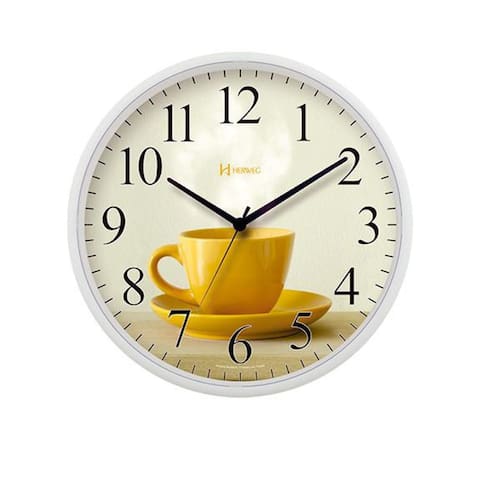 Relógio De Parede Herweg 660098-021 Tamanho: 26cm de diâmetro X 4cm de espessura Maquinário: Step Tic-tac Cor do fundo: Branco com xícara de café Cor da Estrutura: Branco Base: Plástico injetado Vidro: Acrílico Usa pilha AA Fabricado por HERWEG RELÓGIOS com de 1 Ano