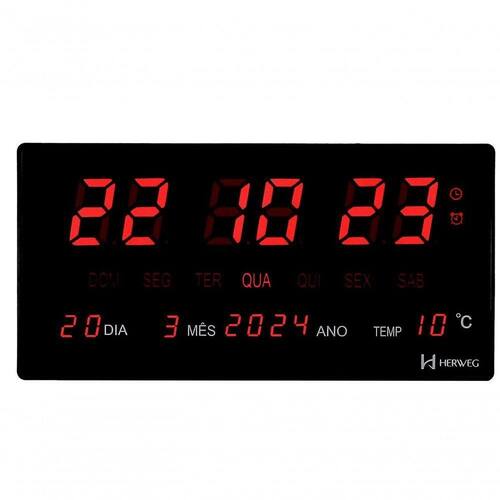 Relógio de parede Herweg digital preto 4606-034 Bivolt -