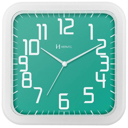 Relógio de Parede Herweg Quadrado Menta 6667-283 Produto de fábrica, Revendedor Autorizado. Informações sobre o produto Relógio de parede - Base Plástico injetado - Visor de Acrílico - Usa 1 pilha AA 1,5V que não acompanha o produto - Mecanismo Step Informações adicionais - Estilo: Moderno - Medidas: 23x23x4 Cm - Cor das bordas : Branco - Mostrador Menta Acompanha a embalagem - 1 Relógio de Parede Herweg Quadrado Menta 6667-283 - 1 Manual De instruções e certificado 1 Ano. Marca: Não Informado Ean: 7897280338502