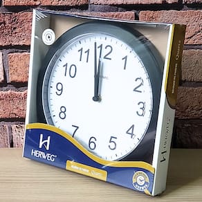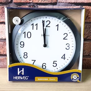Marca: HERWEG Modelo: 660043 - 034 Tipo de relógio: Analógico Formato: Redondo Alarme: Não Mecanismo Contínuo: Sim Cor da caixa: Preto Cor do fundo: Branco Tema: Liso Material da Caixa: Polímeros diversos Características do vidro: Acrílico Tamanho da caixa: 26 cm Espessura da caixa: 4 cm Peso: 348 Gramas Alimentação: 1 pilha1 AA 1,5 volt – a pilha não acompanha o produto Garantia do Fabricante: 12 meses Prazo de validade: Indeterminado Fabricante: HERWEG – Indústria Brasileira