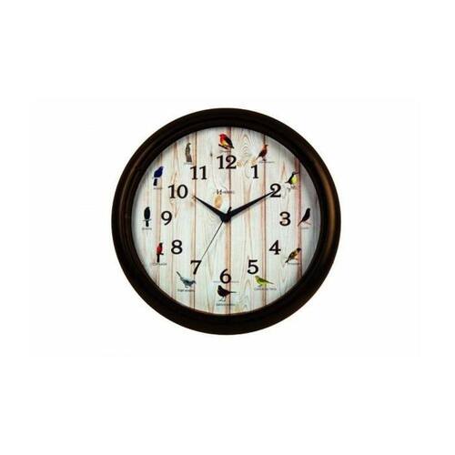 Relógio de parede nacional com canto dos pássaros.Base: plástico injetadoCanto dos pássaros de hora em hora.Usa pilha AA.