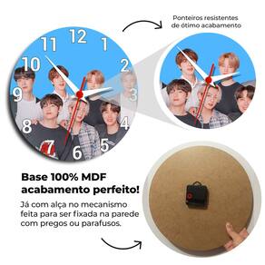Relógio de Parede K-Pop Grupo BTS Decoração Cantores