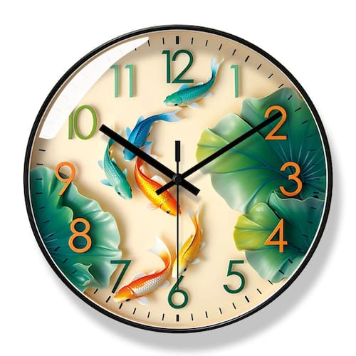 Material: Material da concha: plástico Material do espelho: vidro Material do mostrador: PVC Tamanho: 30 × 30 cm Peso: 1220 g Belo design de inspiração chinesa com peixes koi vibrantes nadando em meio a folhas verdes exuberantes, adicionando um toque tranquilo e artístico a qualquer ambiente. O movimento silencioso e antiaderente de quartzo garante uma atmosfera silenciosa, tornando-o perfeito para salas de estar, quartos e cozinhas. Feito com caixa de plástico durável, mostrador de PVC de alta qualidade e um espelho de vidro elegante para um acabamento premium. Números ousados e fáceis de ler em verde e laranja contrastam com o fundo suave, oferecendo um relógio visualmente atraente. Funciona com bateria para facilitar a configuração e manutenção (baterias não incluídas), proporcionando cronometragem sem complicações.