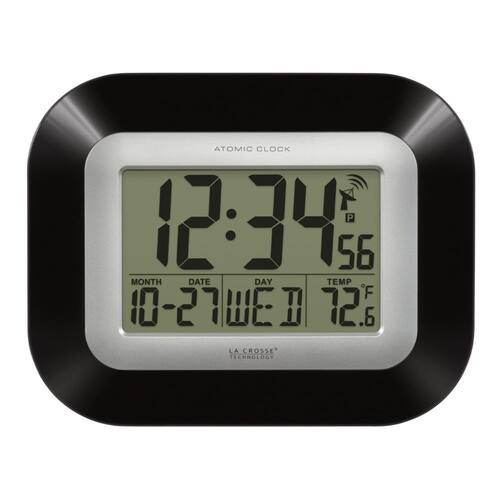 La Crosse Technology WT-8005U-B-INT Relógio de parede digital atômico com temperatura interna, preto,