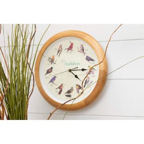 O relógio de parede Singing Bird Audobon On The Hour apresenta doze dos pássaros canoros norte-americanos mais populares enfeitando o mostrador. O relógio é feito de madeira maciça com acabamento em carvalho; requer 3 pilhas AA (não incluídas). O relógio de parede mede aproximadamente 33,5 x 33,5 x 4,5 cm; cada hora é anunciada pela bela canção autêntica daquele pássaro em particular para uma canção diferente a cada hora. O sensor de luz desativa as músicas quando a sala está escura para evitar perturbações noturnas e surpreendentes. Embalado dentro de uma embalagem protetora. - O relógio de parede Singing Bird Audobon On The Hour apresenta doze dos pássaros canoros norte-americanos mais populares enfeitando o mostrador - O relógio é feito de madeira maciça com acabamento em carvalho; requer 3 pilhas AA (não incluídas) - O relógio de parede mede aproximadamente 33,5 x 33,5 x 4,5 cm; cada hora é anunciada pela bela canção autêntica daquele pássaro em particular para uma canção diferente a cada hora - O sensor de luz desativa as músicas quando a sala está escura para evitar perturbações noturnas e surpreendentes - Embalado dentro de uma embalagem protetora
