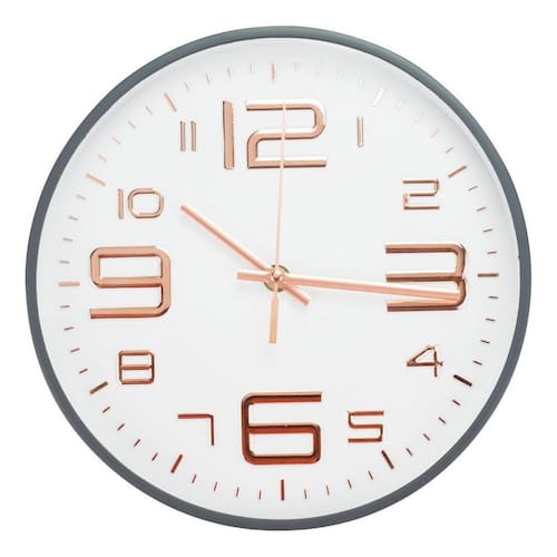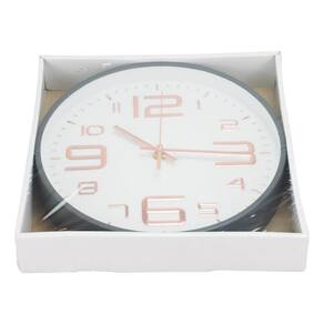 Relógio de parede redondo de 24,5 x 24,5 cm de dimensão com 4,5 cm de profundidade. Borda, numeração e ponteiros cor rosê ou cinza escuro, com fundo branco, . Ponteiros para horas, minutos e segundos. Numeração arábica. Material: plástico; Funcionamento: 1 pilha AA Informação Adicional Código GD-9855K1-M(ROSE) Peso (Kg) 0.40 Altura (cm) 24.50 Largura (cm) 24.50 Comprimento (cm) 4.50 Certificado Não se aplica Ean: 4894290292834