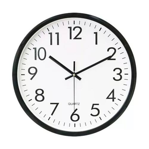 Relógio de parede redondo de 19 cm Relógio de parede redondo preto\ nCaracterísticas:\ nMaterial: plástico\ nAlimentado por baterias: 1xAA (não incluído)\ nSistema de ancoragem embutido (CHEGADA E SUSPENSÃO)\ nMedida: 19x4