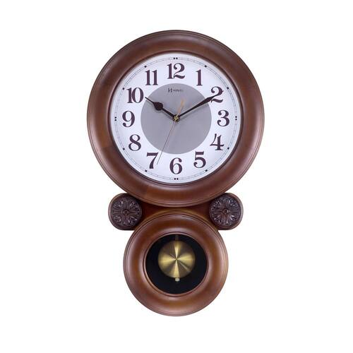 Tamanho: 31,5cm de largura X 50,5cm de altura X 7cm de espessura Maquinário: Sweep Contínuo silencioso Cor do fundo: Branco Cor da Estrutura: Capuccino Base: Madeira pintada Vidro: Cristal mineral Usa pilha AA Toque Westminster Volume de som na melodia Toque de hora cheia com melodia musical Sem toque de hora no período da noite Pêndulo Madeira de reflorestamento