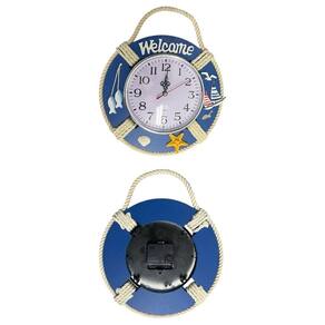 Detalhes Material: Madeira Dimensões:diâmetro relógio 16cm / Diâmetro total 25 Cor:azul e branco com detalhes náuticos Estilo:temático marítimo Funcionamento: 1 Pilha AA pilha inclusa Marca: Não Informado Ean: 7908698725461