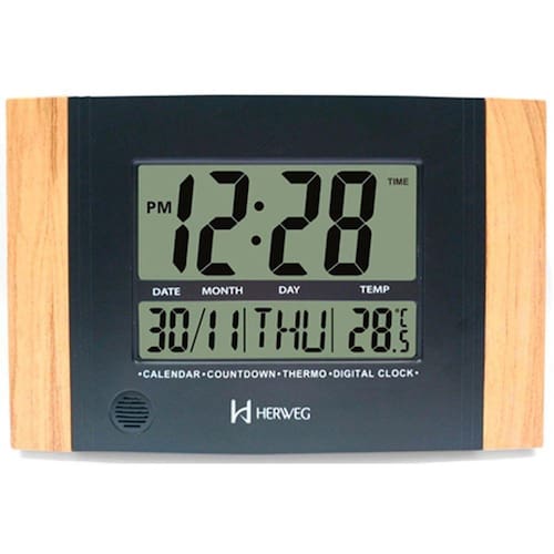 Relógio de Parede ou Mesa Digital LCD Calendário Termômetro Madeira Clara Herweg 6438 único -