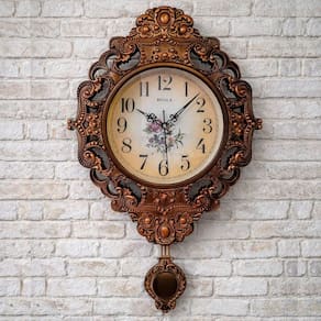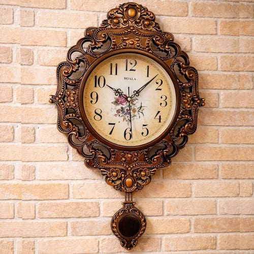 O Relógio de Parede com Pêndulo Boala Floral combina design rústico com detalhes elegantes, trazendo um toque vintage sofisticado para qualquer ambiente