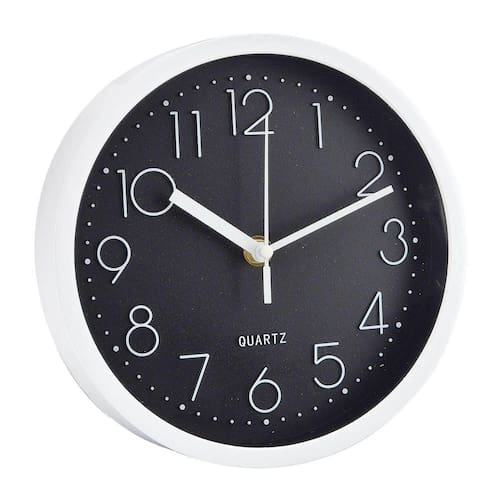 Relógio de Parede Pequeno 20cm Silencioso Números 6085 Cor: Preto e Branco Perfeito para quem busca uma opção única e estilosa para a casa, este relógio é feito de material resistente, com acabamento reforçado, números grandes e design moderno. Seu mecanismo é ultra silencioso sem tic-tac e de baixo consumo, funcionando com apenas 1 pilha AA pilha comum, não acompanha pilha .