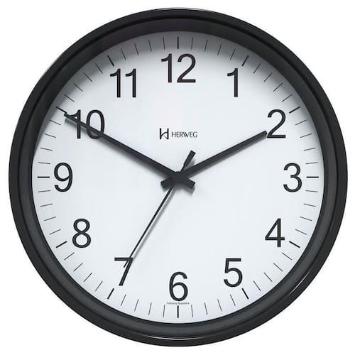 Relógio De Parede Preto 22 Cm Herweg Tictac 6101 Preto - Preto Relógio De Parede Preto 22 Cm Herweg Tictac 6101 Preto - Preto - Relógio de Parede Quartz pequeno 6101 Usa PIlha AA Mecanismo Step Produto