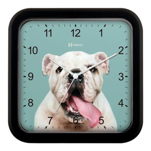Relógio de Parede Quadrado Cachorro -23cm - Herweg 66011434 O relógio de Parede é um item indispensável para se ter em casa, pode ser utilizado em diversos ambientes. Os produtos da marca Herweg são muito duráveis, combinando beleza e utilidade, são perfeitos para presentear. Produto 100% testado e já acompanha a Pilha de Fábrica 1 ano Produto com -usa pilha AA -produto nacional -mecanismo step Tamanho: 23A x 23L x 4E cm