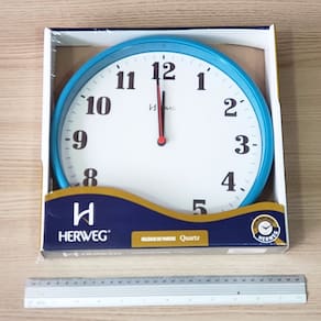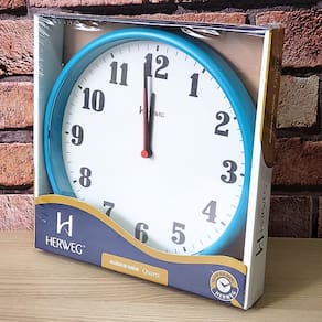 Marca: HERWEG Modelo: 6126 - 267 Tipo de relógio: Analógico Alarme: Não Cor da caixa: Turqueza Pantone 313 Cor do fundo: Branco Tema: Liso Material da Caixa: Polímeros diversos Características do vidro: Vidro Mineral Tamanho da caixa: 27 cm Espessura da caixa: 5 mm Peso: 330 Gramas Alimentação: 1 pilha1 AA 1,5 volt – a pilha não acompanha o produto Garantia do Fabricante: 12 meses Prazo de validade: Indeterminado Fabricante: HERWEG – Indústria Brasileira