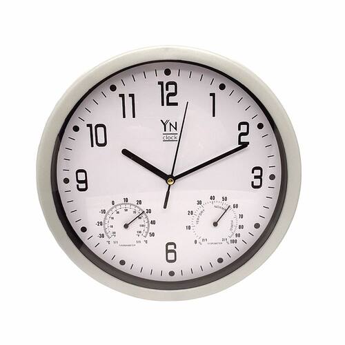 ESPECIFICAÇÕES DO RELÓGIO DE PAREDE REDONDO CINZA COM TODOS OS NÚMEROS TERMÔMETRO E UMIDADE DO AR: