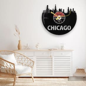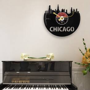 Material: Material da concha: metal Material do espelho: metal Material do mostrador: PVC Tamanho: 30 × 30 cm Peso: 2000 g Design exclusivo com o icônico horizonte de Chicago com a aparência de um disco de vinil vintage e a frase divertida “É hora de um bom café”. O movimento silencioso e não aderente de quartzo garante um ambiente tranquilo e silencioso, mantendo o tempo perfeito. Caixa de metal durável com um elegante mostrador de relógio em PVC, combinando elementos modernos e retrô para uma peça perfeita. Ideal para cozinhas, salas de estar, escritórios ou cafeterias, adicionando funcionalidade e personalidade ao seu espaço. Marcas de tempo fáceis de ler e ponteiros ousados, oferecendo estilo e praticidade para o uso diário.