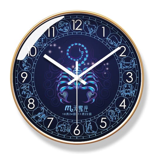 Material: Material da concha: plástico Material do espelho: vidro Material do mostrador: PVC Tamanho: 30 × 30 cm Peso: 0,98 kg incluindo embalagem Design do Zodíaco Escorpião: Apresentando uma ilustração impressionante do símbolo do zodíaco Escorpião com signos astrológicos detalhados, perfeito para amantes da astrologia. Silencioso e sem tique-taque: desfrute de um ambiente calmo e silencioso com esse movimento de quartzo silencioso e sem tique-taque, ideal para qualquer ambiente. Estilo astrológico e moderno: O esquema de cores azul escuro e roxo com intrincados símbolos do zodíaco cria uma aparência moderna e mística. Números fáceis de ler: números brancos em negrito em um fundo escuro simplificam a leitura da hora a qualquer distância. Durável e operado por bateria: feito de PVC e vidro de alta qualidade, este relógio é alimentado por uma bateria para fácil configuração e uso duradouro.