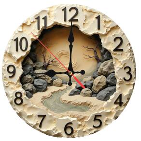Material: Material da concha: madeira Material do espelho: revestimento de papel Material do mostrador: revestimento de papel Tamanho: 10 polegadas Peso: 240 g Design de paisagem desértica 3D — Apresentando uma cena desértica 3D lindamente elaborada com pedras, areia e árvores, este relógio adiciona um toque artístico e sereno à sua casa. Silencioso e sem tique-taque — O movimento silencioso de quartzo garante que não haja som de tique-taque, tornando-o perfeito para um ambiente silencioso em seu quarto, sala de estar ou escritório. Durável e elegante — Feito de MDF de alta qualidade com acabamento realista e texturizado, este relógio é robusto e visualmente atraente, complementando a decoração moderna e rústica. Estética única — O design marcante, com seu retrato artístico da natureza, cria uma atmosfera relaxante e sofisticada em qualquer espaço. Perfeito para qualquer ambiente — Ideal para salas de estar, quartos ou como peça de destaque em sua casa ou escritório, este relógio certamente chamará a atenção e adicionará personalidade às suas paredes.