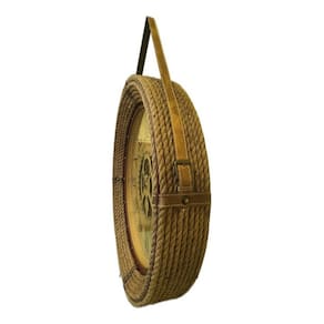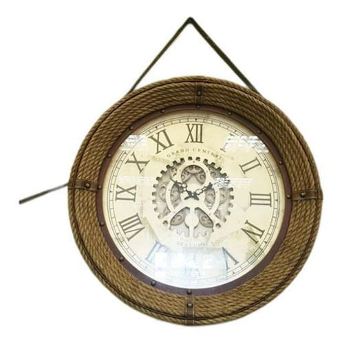 Relógio De Parede Vintage Alça Corda Couro 76 X 76 Relógio de Parede Vintage Relógio de Parede Vintage Alça de Couro 76 x 76 O relógio de parede Vintage com moldura de couro é graciosamente reproduzido a partir de um relógio antigo de mais de um século. Com sua estrutura interna de metal, e corda entrelaçada na parte frontal, combina forma e função com elegância, puro requinte. Peça robusta com material de alta qualidade, que garantem a sustentação do seu item na sua decoração, sendo fácil e simples de instalar, por possuir um gancho seguro que pode ser pendurado em qualquer superfície. Produto para uso residencial em ambiente interno, podendo servir de decoração para sua sala, hall, quarto, cozinha e banheiro. Recurso: 1. Este relógio de parede Vintage pode decorar o seu espaço, tornar a decoração única 2. Feito com acabamento requintado 3. Delicado acabamento retrô antigo faz com que todo o espaço seja permeado por um forte sentimento retrô 4. Ao fundo uma engrenagem com efeitos tridimensionais, trazendo uma experiência visual diferente 5. Moldura de couro , o que lhe garante ter forte capacidade de carga Especificação: Tipo de item: Relógio de parede Vintage Material: Metal e Couro Cor Couro: Palha Diâmetro: 76cm Compre agora mesmo um exclusivo relógio de parede vintage