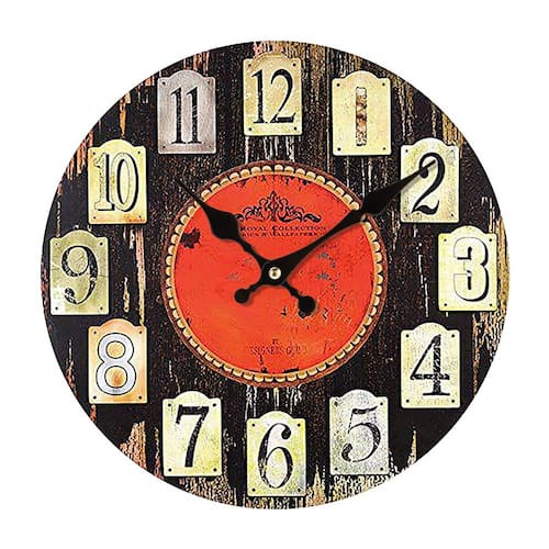 Material: Material da concha: MDF Material do espelho: MDF Material do mostrador: MDF Tamanho: 12 polegadas Peso: 500G Design inspirado no Gretro: com um tema vintage da “Coleção Real” com números grandes e em negrito em um fundo de madeira rústica, este relógio adiciona um toque retrô encantador a qualquer ambiente. Silencioso e sem tique-taque: o movimento silencioso do relógio garante um ambiente tranquilo, perfeito para quartos, escritórios ou salas de estar onde você precisa de tranquilidade. Durável e elegante: feito de MDF de alta qualidade, este relógio combina durabilidade com um design atraente e criativo que complementa a decoração rústica ou vintage. Números fáceis de ler: os números grandes e contrastantes facilitam a leitura à distância, enquanto o centro laranja vibrante adiciona um toque extra de cor. Decoração versátil: com 30 cm (12”), este relógio de parede se encaixa perfeitamente em qualquer sala de estar, cozinha ou escritório, oferecendo cronometragem funcional e decoração elegante.