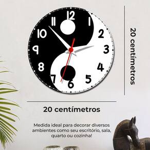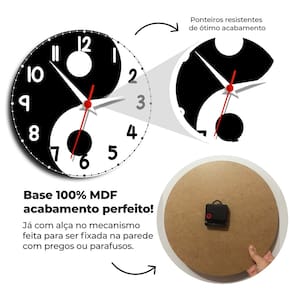 - Mecanismo Silencioso Sem Tic Tac - Medidas : Altura: 20cm x Largura: 20 cm x Espessura: 3 mm - Mecanismo QUARTZ, usar 1 pilha AA (não inclusa); - Materiais Base: MDF corte a Laser - Imagem: Impressão de alta qualidade - Laminado: Não desbota com o tempo - Embalados em caixas individuais.