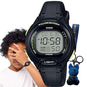 Relógio de Pulso Casio Infantil Prova Dagua Calendáro Alarme Cronomemtro Luz Led Digital Esportivo LW-203 Rosa Preto Azul Cinza + Chaveiro Personagens - Preto - LW-203-1BVDF