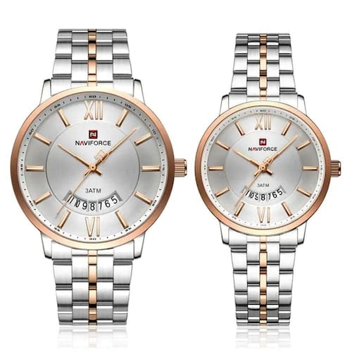 Exemplo de sofisticação e tecnologia, perfeitos para casais que buscam manter-se no estilo. Estes relógios combinam um design clássico com funcionalidades modernas, apresentando um mostrador redondo de 40mm feito de Hardlex, garantindo durabilidade e resistência aos riscos do dia a dia. A peça é fabricada com uma atenção única aos detalhes, utilizando aço inoxidável para a pulseira, que mede confortáveis 23cm, e um fecho oculto, proporcionando segurança e elegância incomparáveis. Ideal para presentes de casamento ou simplesmente para complementar um visual casual e chic, os relógios Naviforce são a escolha certa para casais que valorizam qualidade e bom gosto.