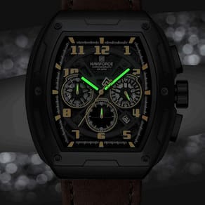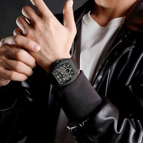 Este relógio de pulso com movimento de quartzo apresenta um design tonneau esportivo que alia estilo e funcionalidade. Com uma iluminação eficaz para leitura noturna e resistência à água, é perfeito para atividades ao ar livre e uso diário. O design robusto e moderno garante uma aparência arrojada, enquanto a impermeabilidade assegura durabilidade e praticidade.