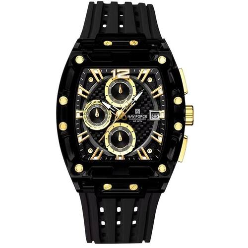 Relógio De Pulso De Silicone Tonneau Relógio Esportivo Impermeavel 3atm Preto Dourado