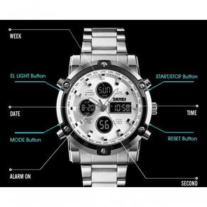 Relógio De Pulso Digital Masculino, Quartzo, Com Contagem Regressiva E Pulseira De Aço, Display Triplo Prata