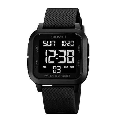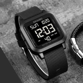 Está procurando um relógio Você acabou de encontrar Descrição detalhada: Marca: skmei Modelo: 1894 Gênero: unissex Categoria: digital Especificações: possui luz de fundo, cronômetro, alarme, calendário, fuso horário múltiplo, formatos de 12/24 horas, contagem regressiva. Resistente à água 5 atm. Pulseira de pu com fecho de fivela. Relógio disponível em . : 90 dias, do vendedor. Cuidados com produto: Este relógio é perfeito para atividades diárias e natação em águas rasas. Importante notar que não é adequado para mergulho com snorkel ou tanque de oxigênio. Evite água muito quente, mudanças bruscas de temperatura e apertar os botões submerso. Após exposição à água salgada ou de piscina, enxágue com água corrente. Dimensões : Comprimento da pulseira: cerca de 23,5 cm Diâmetro da caixa: cerca de 4,8 cm Espessura do dial: cerca de 1.1 cm Largura da pulseira: cerca de 2.2 cm Peso: 39g Marca: Não Informado