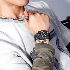 Descubra o relógio de pulso esportivo masculino que combina inovação e estilo em um design impressionante e leve. Com um display duplo e luz noturna, este relógio se adapta a todas as suas necessidades, seja para aventuras ao ar livre ou para o dia a dia na cidade. Este modelo oferece um cronômetro de quartzo multifuncional, adequado para jovens dinâmicos em busca de praticidade e precisão.