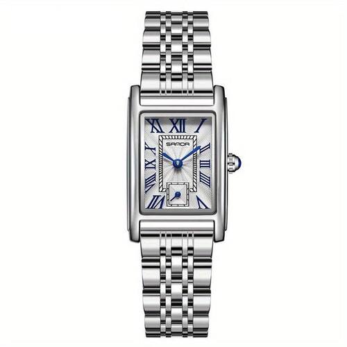 Relógio De Pulso Estilo Lazer E Negócios, Retangular, Ponteiro De Quartzo Prata G