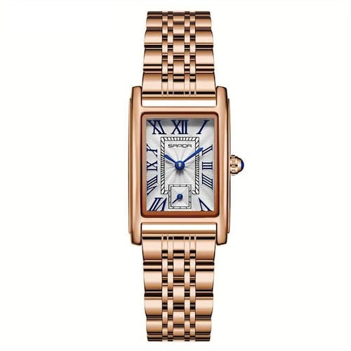 Descubra o equilíbrio perfeito entre estilo e funcionalidade com este elegante relógio de pulso feminino. Com um design retangular e ponteiro de quartzo, este acessório é a escolha ideal para quem busca sofisticação em ambientes de lazer e negócios. A inspiração romana em seus detalhes confere um toque atemporal, enquanto o acabamento em aço inoxidável assegura durabilidade e sofisticação em cada detalhe deste relógio.