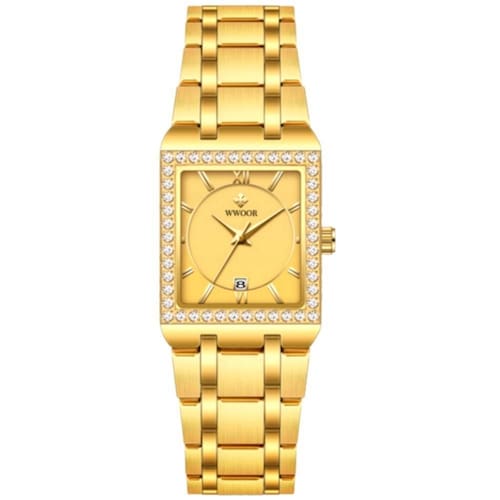 Relógio De Pulso Feminino Casual Com Strass Em Aço Inoxidavel Impermeavel Dourado