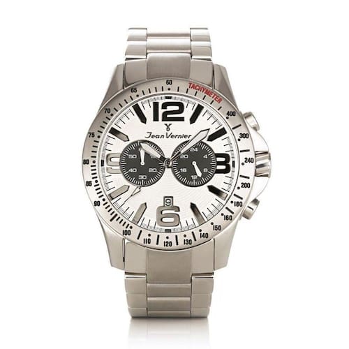 A jean vernier foi fundada em 1977 na suíça. Orgulhosos de nossas raízes e levados pelo entusiasmo e pela experiência da alta relojoaria, a jean vernier tem como referência as tradicionais marcas relojoeiras suíças. Da matéria prima utilizada, aos detalhes dos mostradores, todo processo passa pelos cuidados e pela supervisão de um time apaixonado por relógios. Trabalhamos para garantir a qualidade, precisão e acabamento em cada um de nossos relógios.Características técnicas do produto: Largura da caixa cm : 4,6 Espessura cm : 1,5 Comprimento da pulseira cm : 25 Peso g : 212Caixa de aço inoxidável 316lPulseira de açoVidro de cristal mineralResistente à água 5atmFunções: analógico, calendário, cronógrafoMostrador: brancoModelo: jean vernier Produto originalReferência do produto: jv62833Todos os nossos produtos possuem:O garantia de fábrica de 02 anosO nota fiscalO manual de instruçõesO estojo originalO assistência técnica em território nacionalTodo relógio vendido é cuidadosamente revisado antes do envio, incluindo bateria nova.