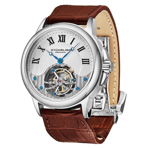 O Relogio de pulso masculino Aureate Tourbillon 541L e um modelo sofisticado e elegante, perfeito para homens que apreciam um estilo classico e refinado. Com corda manual, ele possui um mostrador prateado que chama a atencao pela sua beleza e simplicidade. Alem disso, sua pulseira de couro marrom e macia e confortavel, tornando o ideal para ser utilizado diariamente. Com tamanho de 42mm, ele e resistente a agua ate 50 metros 165 pes e possui uma moldura arredondada polida, que adiciona um toque de sofisticacao ao design. Com uma largura de 22mm, a correia de couro completa o visual elegante e classico deste relogio masculino. Dimensoes da embalagem 10,67 cm x 8,64 cm x 7,62 cm Fabricante Stuhrling evan Numero do modelo 541Couro.02 Numero da peca 541Couro.02 Peso do item 454 gramas Marca: Não Informado