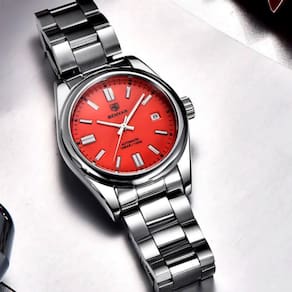 Construído com materiais de primeira qualidade, o estojo e a pulseira em aço inoxidável oferecem durabilidade e resistência ao desgaste, garantindo um visual sofisticado por muitos anos. Sua resistência à água proporciona versatilidade, permitindo que você o use com confiança em ambientes úmidos e atividades aquáticas leves.