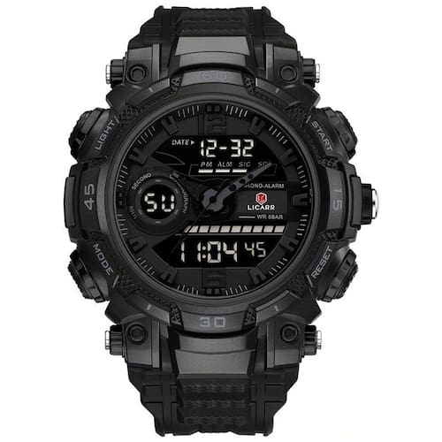 Este relógio esportivo é mais do que apenas um marcador de tempo; é seu companheiro em aventuras. Equipado com um mostrador redondo e movido pelo confiável mecanismo de quartzo, garante precisão na medição do tempo. Seja na academia ou ao ar livre, o cronómetro integrado é perfeito para medir o tempo de suas atividades físicas, enquanto a resistência à água 5 ATM assegura que você continue no caminho sem preocupações, mesmo nos dias chuvosos.