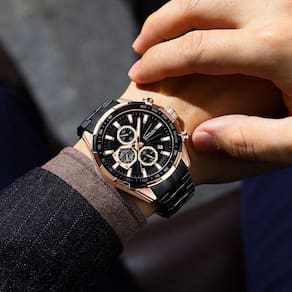 Relógio de pulso de design clássico especialmente criado para homens, O relógio vem com vidro 100% resistente durável e um mostrador fácil de ler as horas, movimento de quartzo oferece um visual elegante de alta qualidade e bateria durável e precisa. Relógio versátil combina com todas as ocasiões, sejam elas formais ou casuais. Use este relógio desde trabalho, lazer até atividades internas e externas ou para uso diário. são um presente perfeito para você e seus entes queridos.