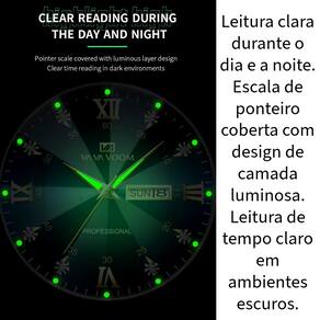 Relógio de Pulso Masculino Luxo Pulseira de Aço VA VA VOOM Movimento de Quartzo: Este relógio possui um movimento de quartzo de alta qualidade, garantindo precisão e confiabilidade no tempo. Resistência à Água 3 Bar: Com resistência à água de até 3 BAR, este relógio é perfeito para uso diário, mas não recomendado para uso no chuveiro ou em mergulho. Material de Aço Inoxidável: Feito de aço inoxidável, este relógio é durável e resistente à corrosão, garantindo uma longa vida útil. Estilo de Negócios: Com seu design elegante e sofisticado, este relógio é ideal para ambientes de negócios e ocasiões formais. • Fecho Dobrável com Segurança: O fecho dobrável com segurança protege o relógio contra arranhões e danos, proporcionando tranquilidade durante o uso. • Janela de Vidro de Hardlex: A janela de vidro de Hardlex oferece claridade excepcional, mesmo em condições de pouca luz. Dimensões principais: Comprimento da pulseira: 24cm Largura da pulseira: 2cm Diâmetro da caixa do relógio: 4,1cm Conteúdo da embalagem: 1 Relógio VA VA VOOM, na variação escolhida, acondicionado em caixa.